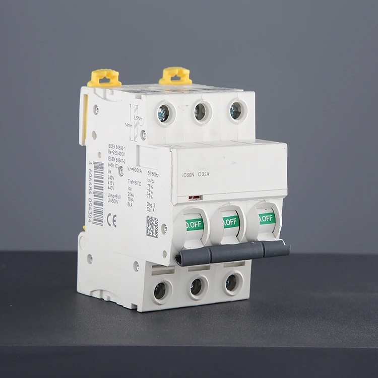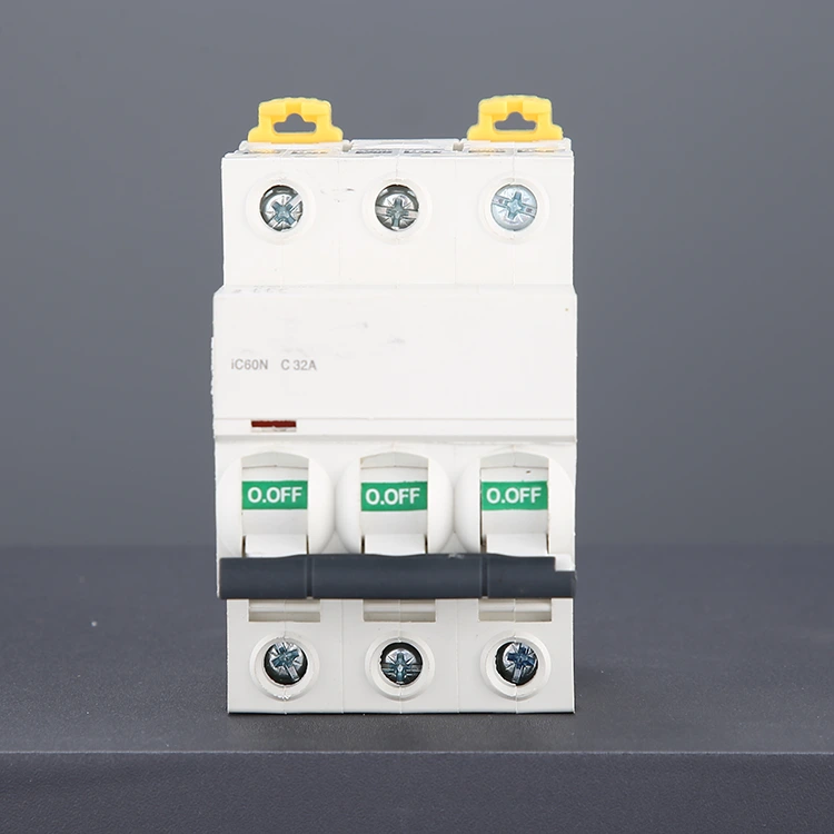 аплікіон:3-полюсний автоматичний вимикач змінного струму DZ47 32A має високу вимикальну здатність і підтримує вимикальну здатність до 6 кА. Підходить для виробництва сонячної енергії, систем виробництва енергії вітру, конвергенційних коробок, морських енергетичних систем та інших систем постійного струму.